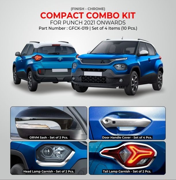 Description : Variant : For All ModelsItem Contains : ORVM Sash (2 Pcs.), Door Handle Cover (4 Pcs.), Head Lamp Garnish (2 Pcs.), Tail Lamp Garnish (2 Pcs.)